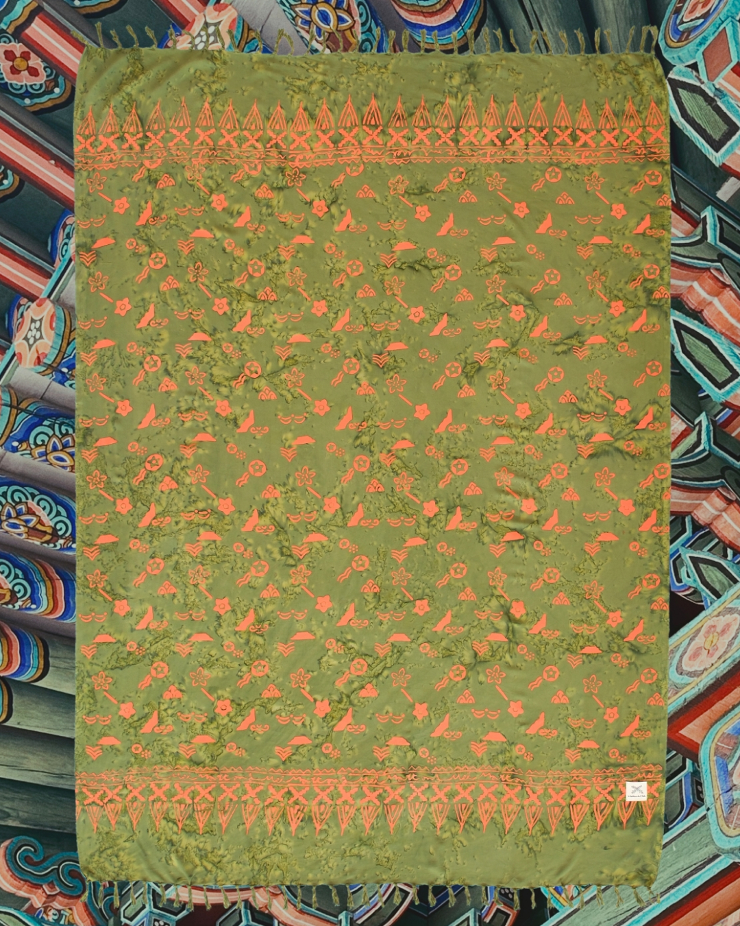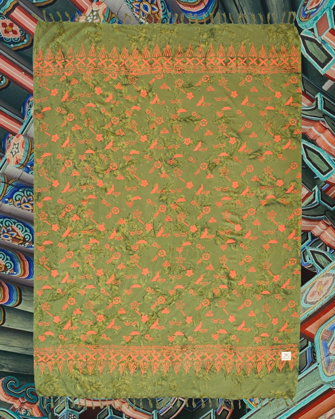고급스러운 단청 문양을 재해석한 다용도 패브릭. 강렬하면서도 절제된 색감과 기하학적인 패턴이 돋보입니다. 일상에서도 전통의 품격을 경험할 수 있는 아이템이에요.