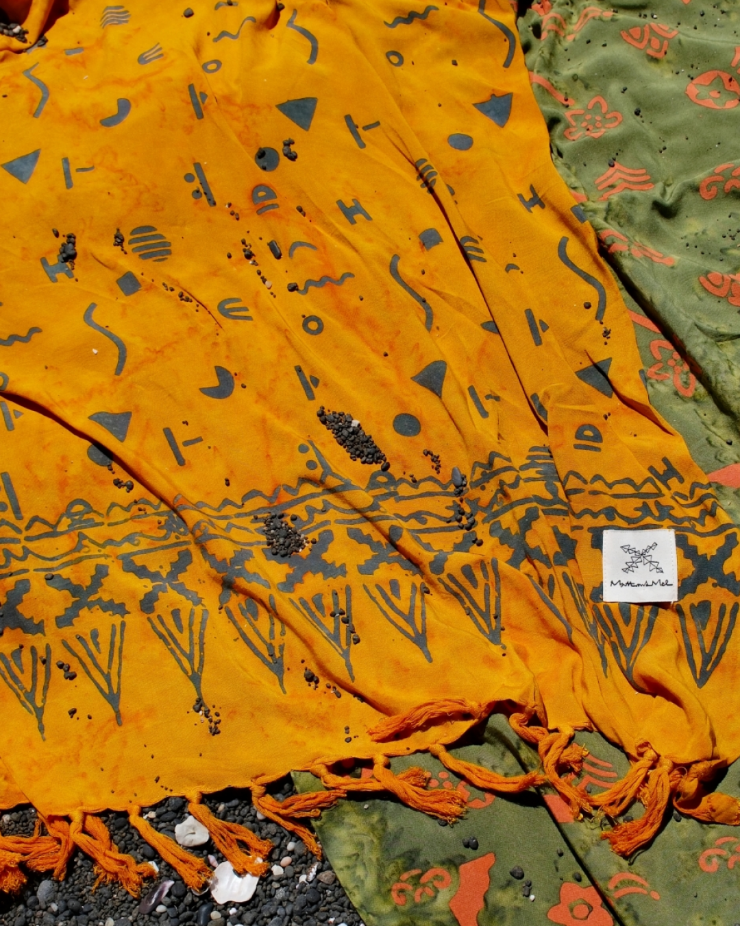 ‘한글’을 담아서 패브릭을 만들면 어떻게 될까요? 실크스크린으로 한국의 미와 전통을 담은 사롱을 제작했어요. 자음과 모음을 리듬감 있게 배열해 눈으로 보는 한 폭의 시 같아요.
