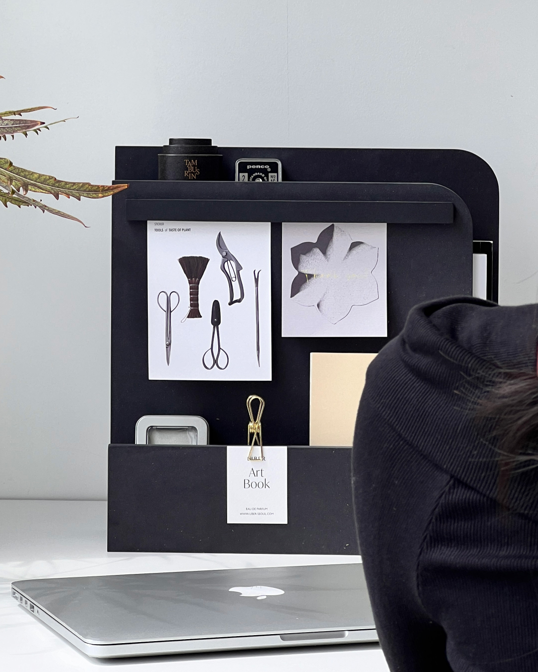 깔끔한 톤의 선반으로 업무 용품 정리하기