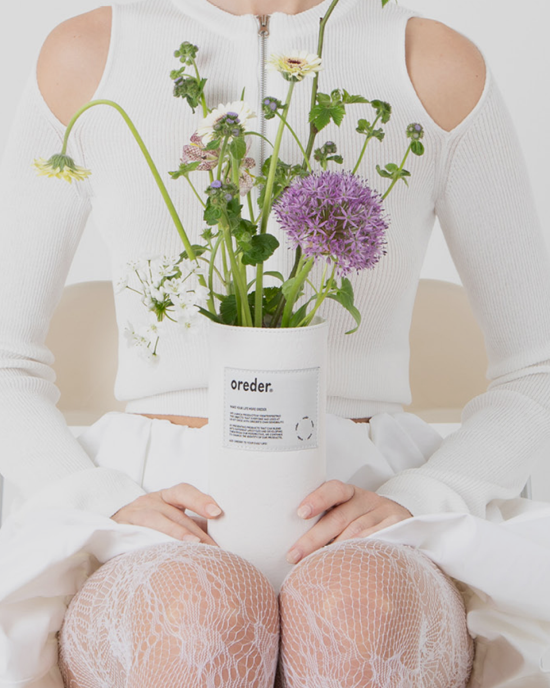 가죽 커버와 단추 디테일이 더해진 오레더의 화병. 꽃 한 송이만 꽂아도 자연스럽게 시선이 머물게 되죠. 오브제처럼 존재하는 특별한 화병으로 공간에 낭만을 씌워 보세요.