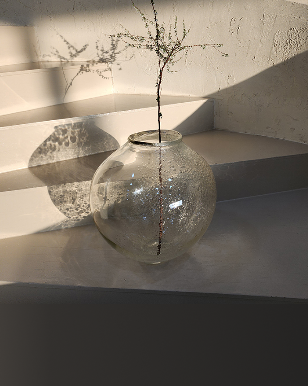 일렁이는 수면 위, 미세하게 일그러진 달의 형상을 담은 항아리. 마버글라스가 블로잉으로 만든 단 하나뿐인 작품입니다. 빛과 그림자 사이에서 존재감을 드러내는 오브제로 특별함을 더해보세요.