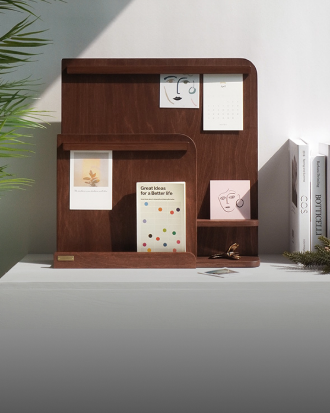 소중한 물건이 사라지지 않게 보관할 수 있는 우딕의 오거나이저. 엽서와 그림을 꽂고, 책을 세우면 가장 작은 전시 공간이 완성됩니다. 우딕이 내 취향이 감각적으로 정리되는 순간을 선사하죠.