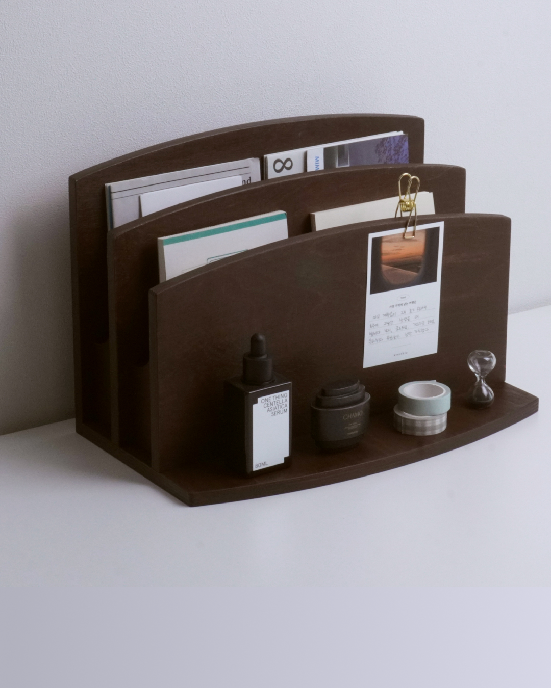 내 방이 필요한 것처럼, 문구류에도 정리된 집이 필요해요. 자주 쓰는 노트와 책은 뒤에 세워두고, 투두리스트는 앞쪽에 두는 거예요. 침대 배치를 바꾸는 것처럼, 가끔 가로로 눕혀 변주를 줘보세요!