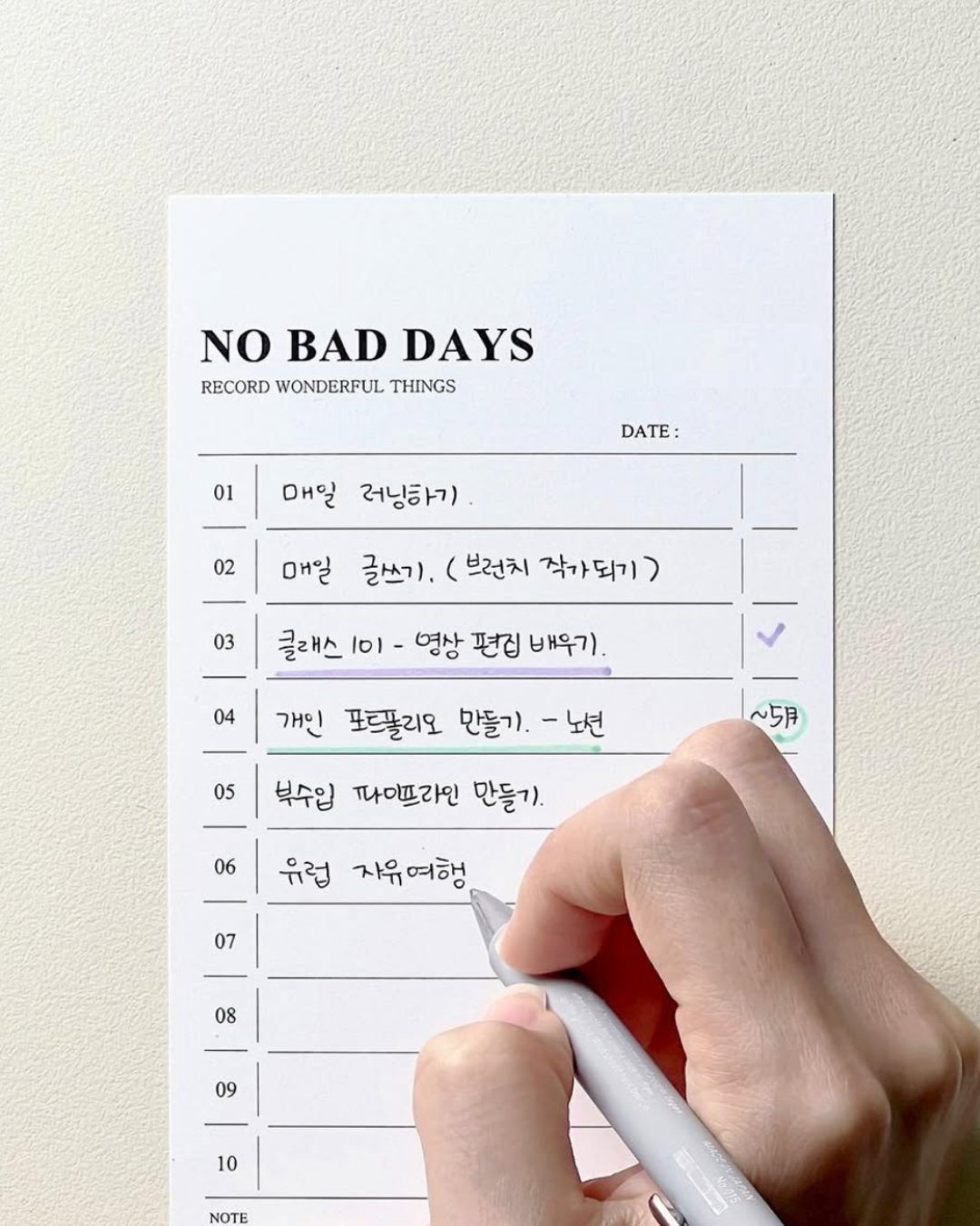노트 한 권을 끝까지 쓰는 일이 어렵다면, 뜯어 쓰는 것도 방법이에요. 끄적끄적 메모를 남기고 당겨서 찢으면 아날로그 감성까지 느껴지죠. 차곡차곡 모아두기만 하면 그 자체로 한 권의 책이 됩니다.