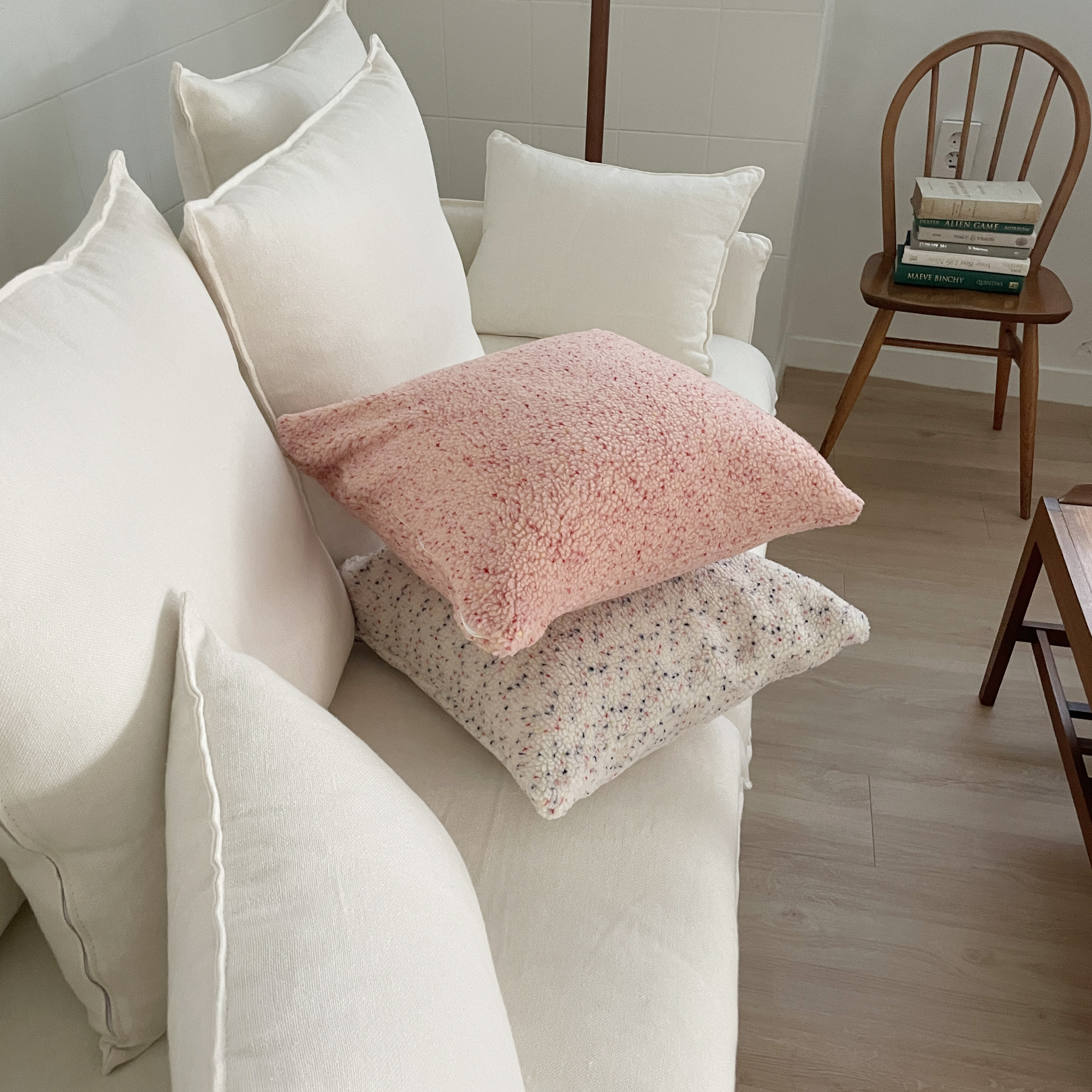 콕콕 박혀있는 양털 느낌의 쿠션커버입니다.