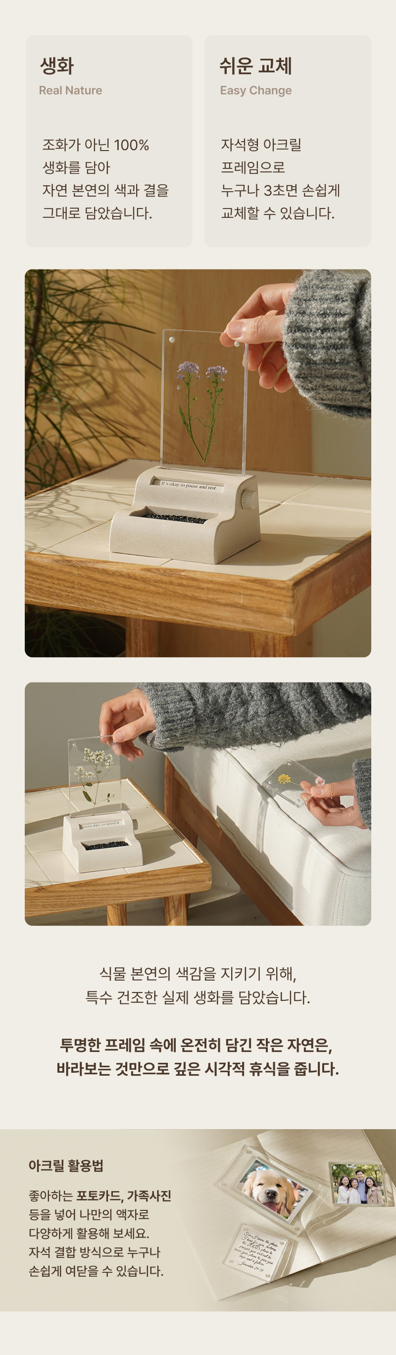 - 변심 반품의 경우 왕복배송비를 차감한 금액이 환불되며, 제품 및 포장 상태가 재판매 가능하여야 합니다.