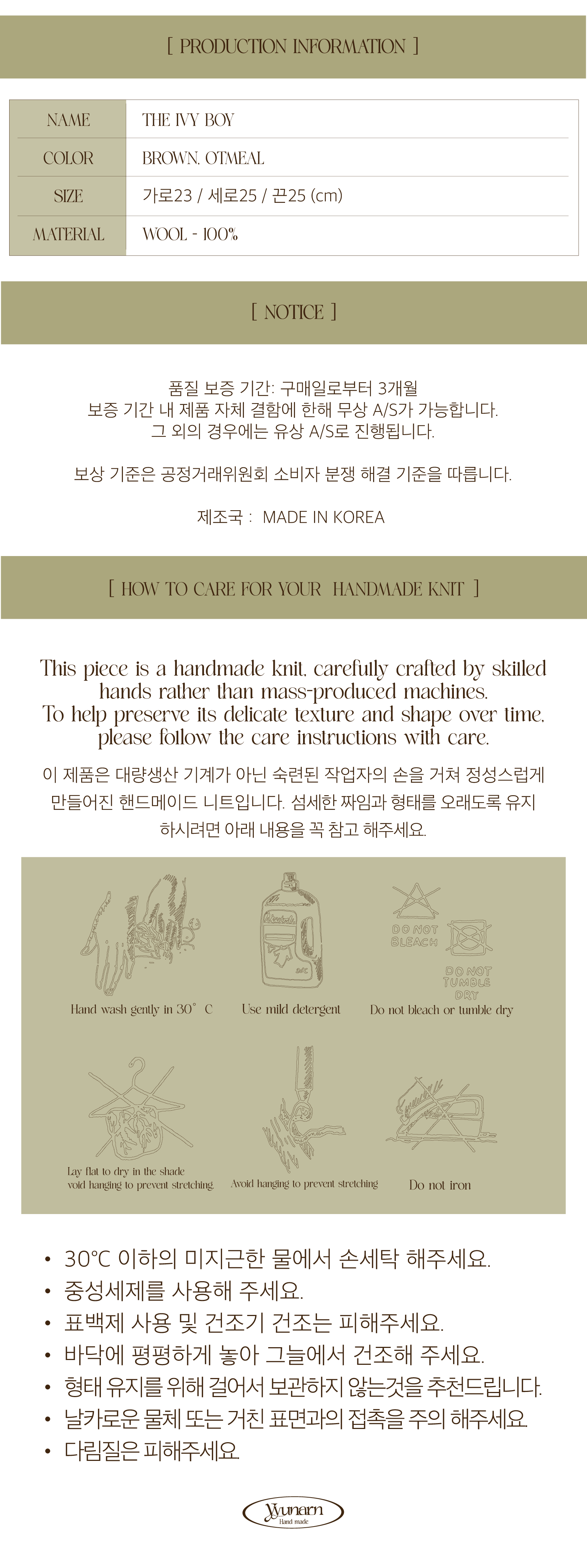 Yyunarn”은 디자이너 Yun과 실을 뜻하는 “yarn”을 의미하는 핸드메이드 니트 브랜드 입니다.