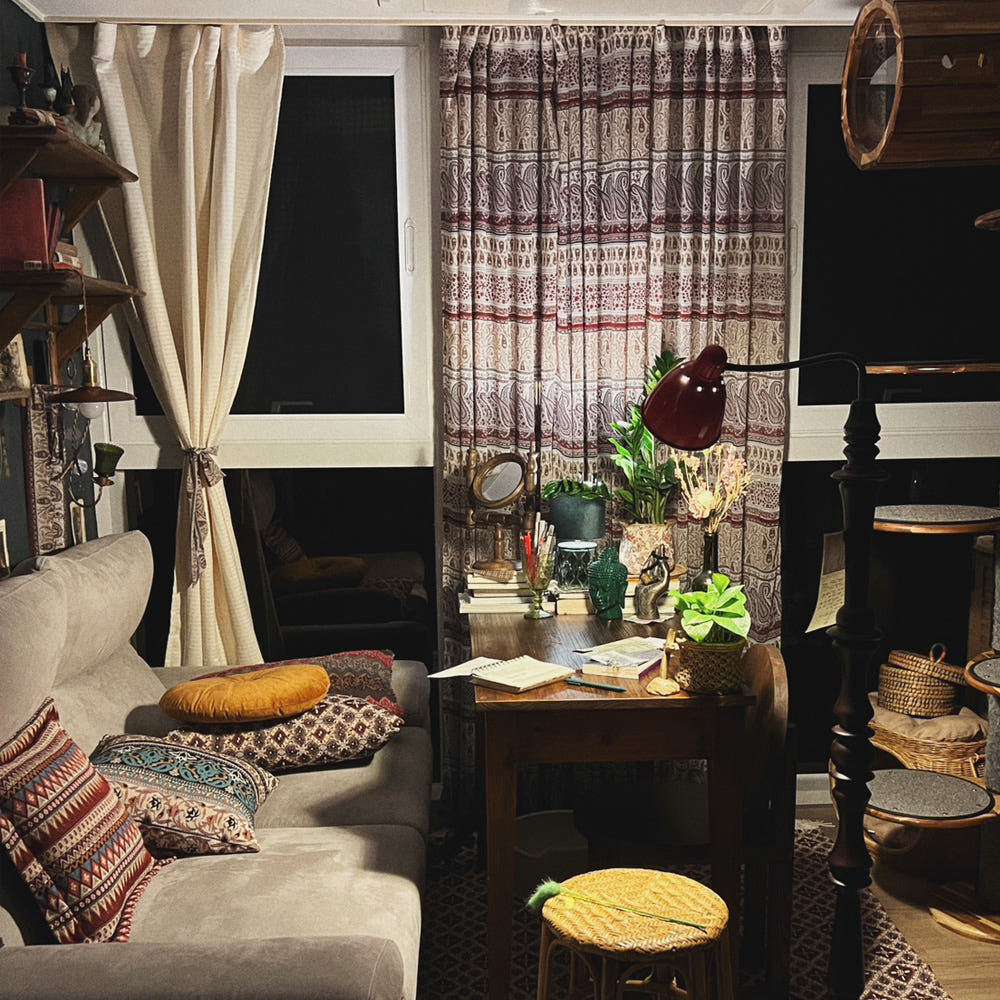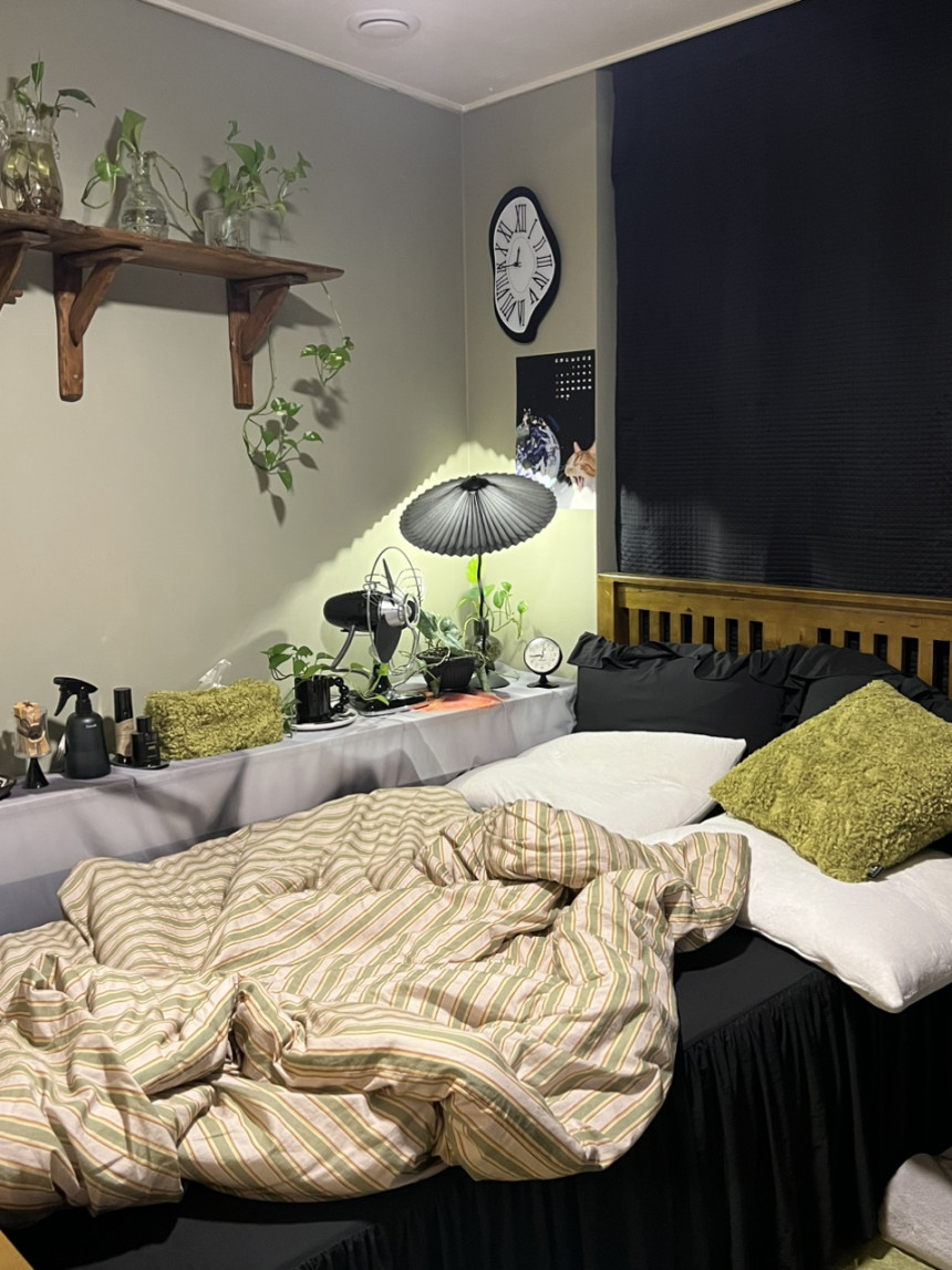 블러드 커튼(블랙)+우디 그린 이불커버+컬리 티슈커버(올리브)